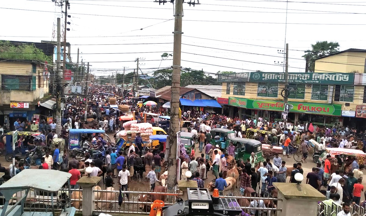 জগন্নাথপুর পশুর হাটে মানুষের উপচেপড়া ভীড়