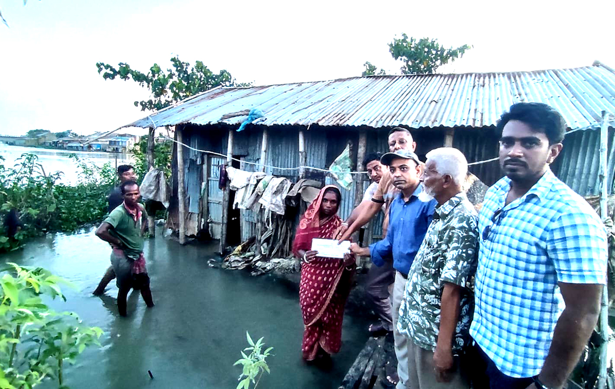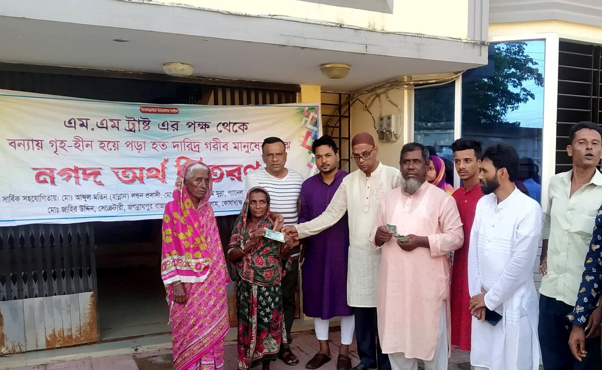 জগন্নাথপুরে বন্যা দুর্গত মানুষের মাঝে এমএম ট্রাস্টের অর্থ বিতরণ