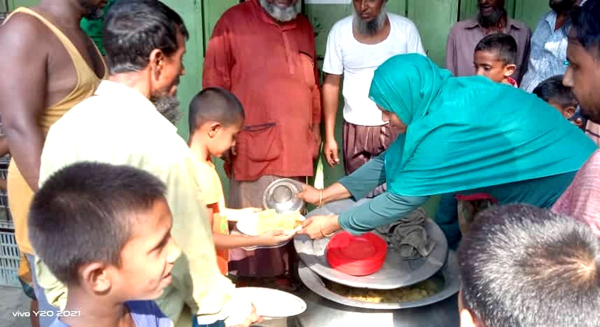 জগন্নাথপুরে মহিলা ভাইস চেয়ারম্যান প্রার্থীর রান্না করা খাবার বিতরণ