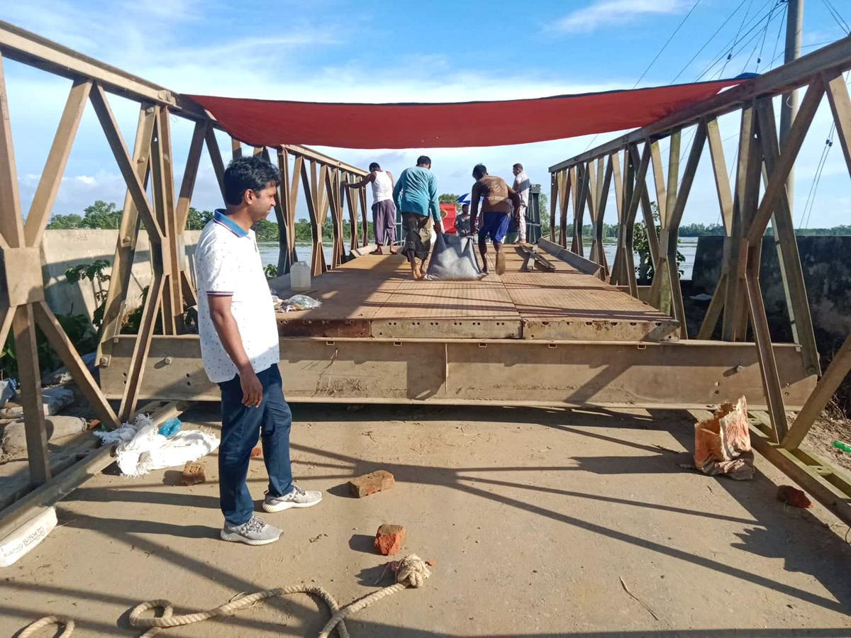 জগন্নাথপুরে ভেঙে যাওয়া সড়কে বেইলি সেতু