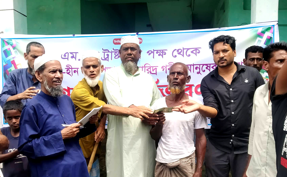 জগন্নাথপুরে বন্যা দুর্গত মানুষের মাঝে এমএম ট্রাস্টের টাকা বিতরণ