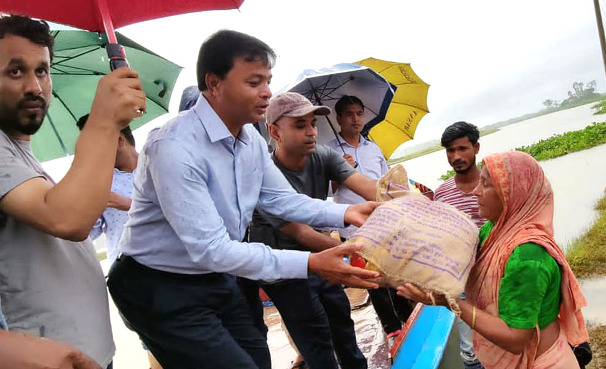জগন্নাথপুরে প্রধানমন্ত্রীর পক্ষে জেলা প্রশাসকের ত্রাণ বিতরণ