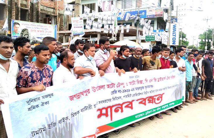 জগন্নাথপুরে ব্যাটারি চালিত যানবাহন বন্ধের দাবিতে মানববন্ধন