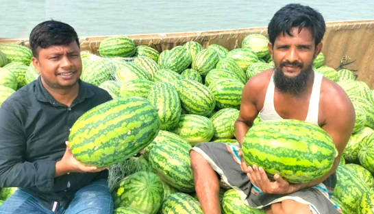 ভোলার চরফ্যাশনে তরমুজের বাম্পার ফলনে খুশি চাষিরা।।