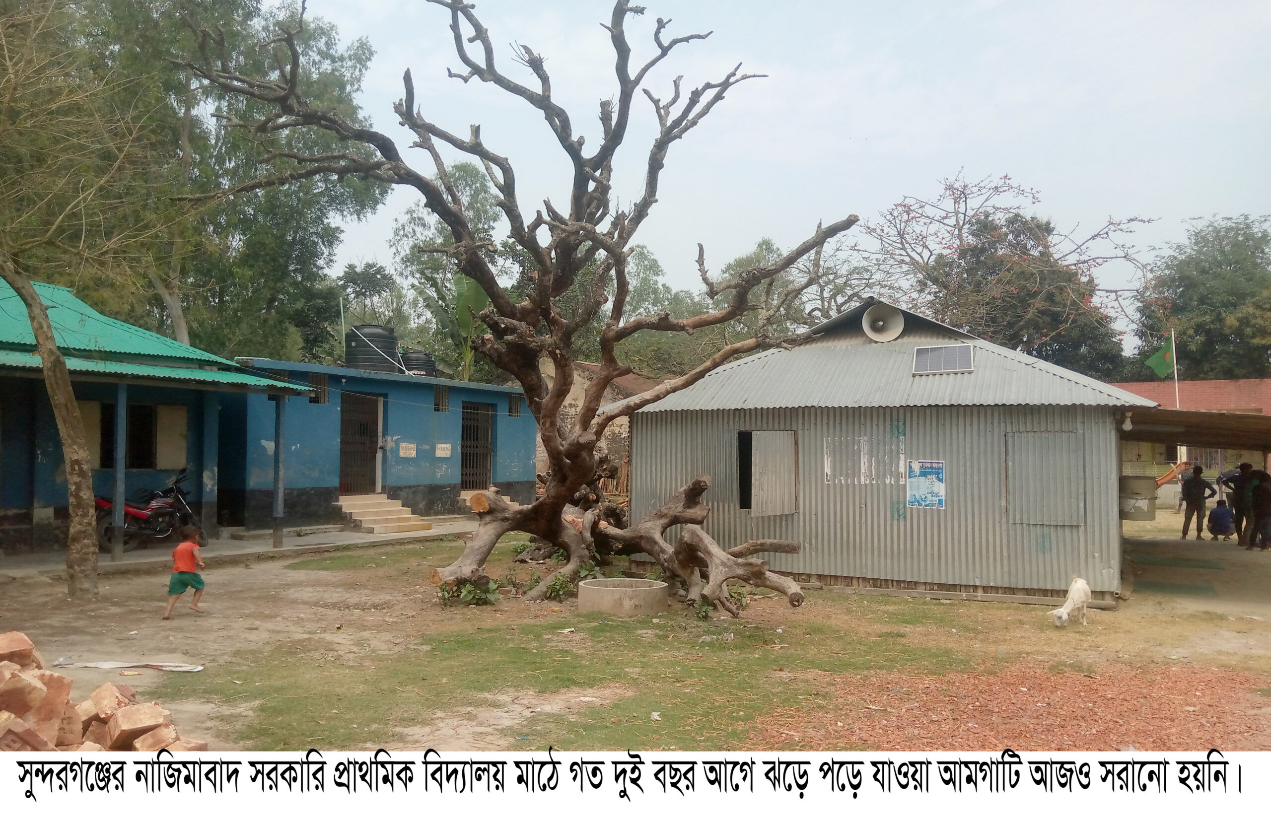 হযরত বেল্লাল সুন্দরগঞ্জ-গাইবান্ধা-প্রতিনিধি।। গাইবান্ধার সুন্দরগঞ্জ উপজেলার জিরো পয়েন্টে অবস্থিত নাজিমাবাদ সরকারি প্রাথমিক বিদ্যালয় মাঠের বিশাল আকৃতির একটা আমগাছ গত দুই