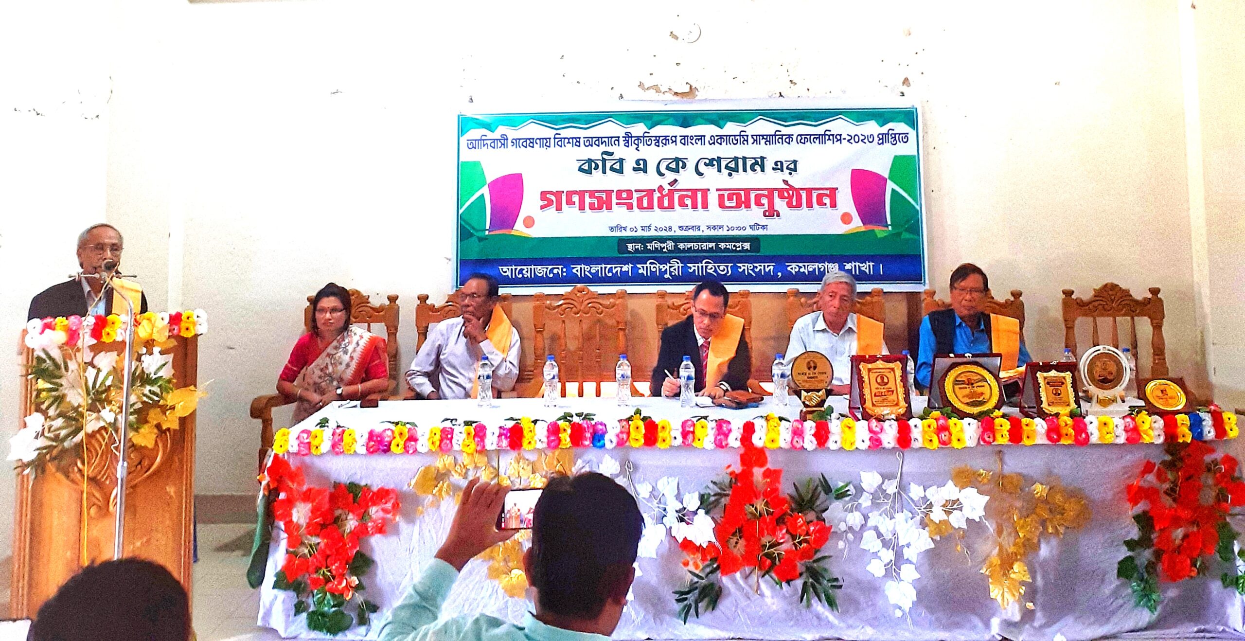 কমলগঞ্জে সাম্মানিক ফেলোশিপ পাওয়ায় কবি এ কে শেরামকে গণসংবর্ধনা।।