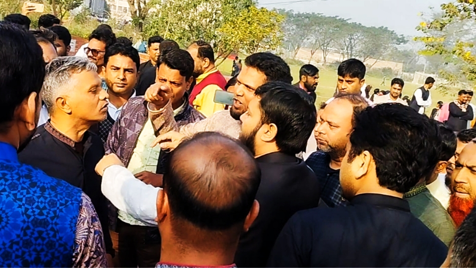পাবিপ্রবিতে শহীদ মিনারে ফুল দেওয়া নিয়ে কর্মকর্তাদের ধস্তাধস্তি।।