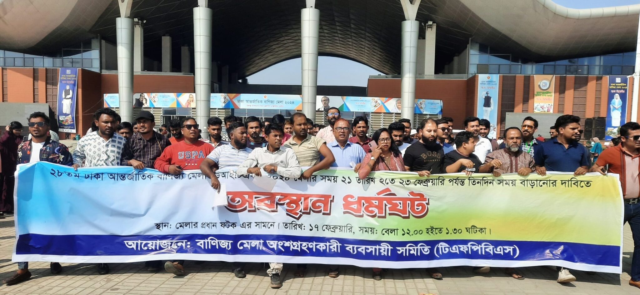 রূপগঞ্জে বাণিজ্য মেলার সময় বাড়ানোর দাবীতে ব্যবসায়ীদের বিক্ষোভ।।