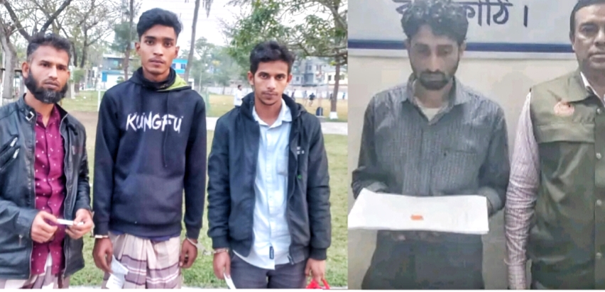 ঝালকাঠিতে গাঁজা সেবন-ইয়াবাসহ ৪জন আটক।।