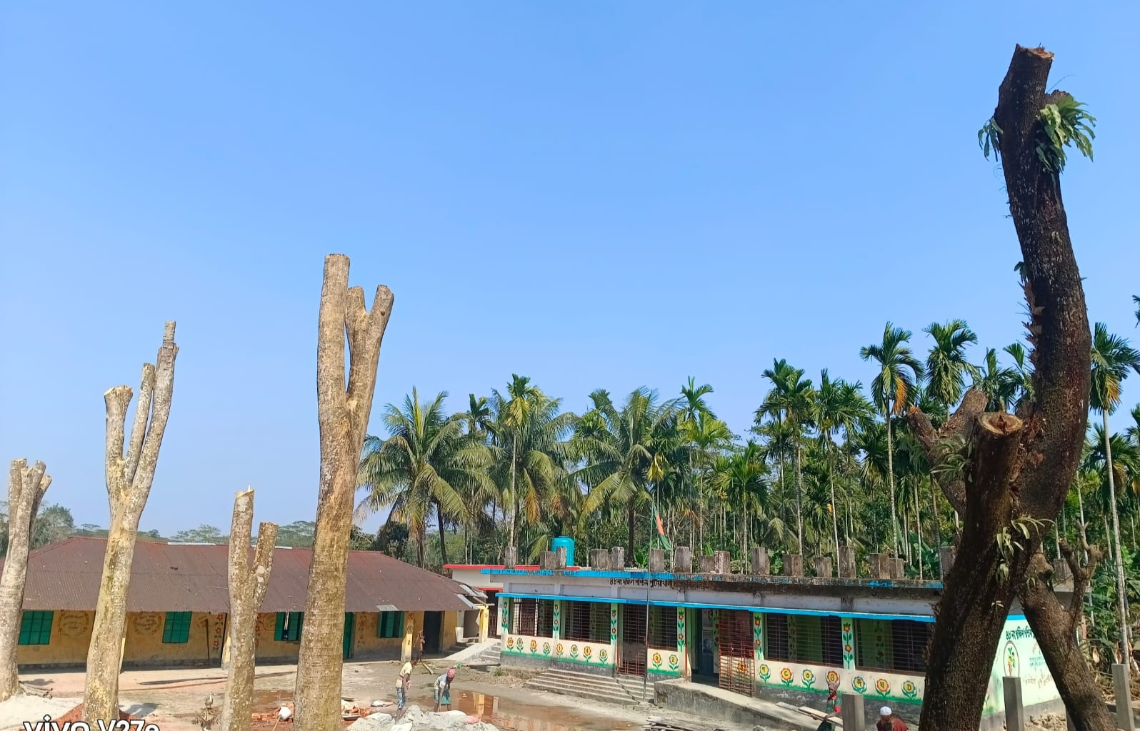 প্রধান শিক্ষকের বিরুদ্ধে টেন্ডার ছাড়াই সরকারি গাছ কর্তনের অভিযোগ।।
