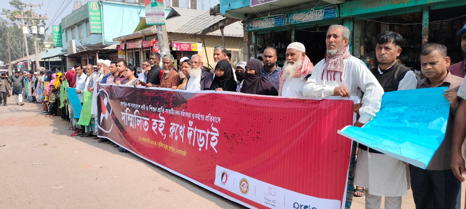 নোয়াখালী প্রতিনিধি।। নোয়াখালীর সুবর্ণচর উপজেলায় নারীর প্রতি ক্রমবর্ধমান সহিংস ঘটনার প্রতিবাদ জানিয়েছেন স্থানীয় বিভিন্ন শ্রেণি পেশার কয়েক শ মানুষ। তারা