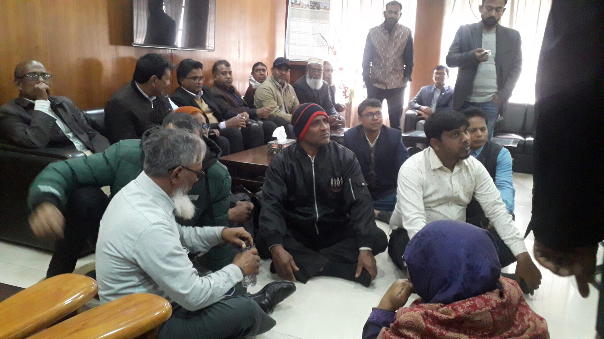 ভিসি অফিসের মেঝেতে বসে আন্দোলনে কর্মকর্তারা।।