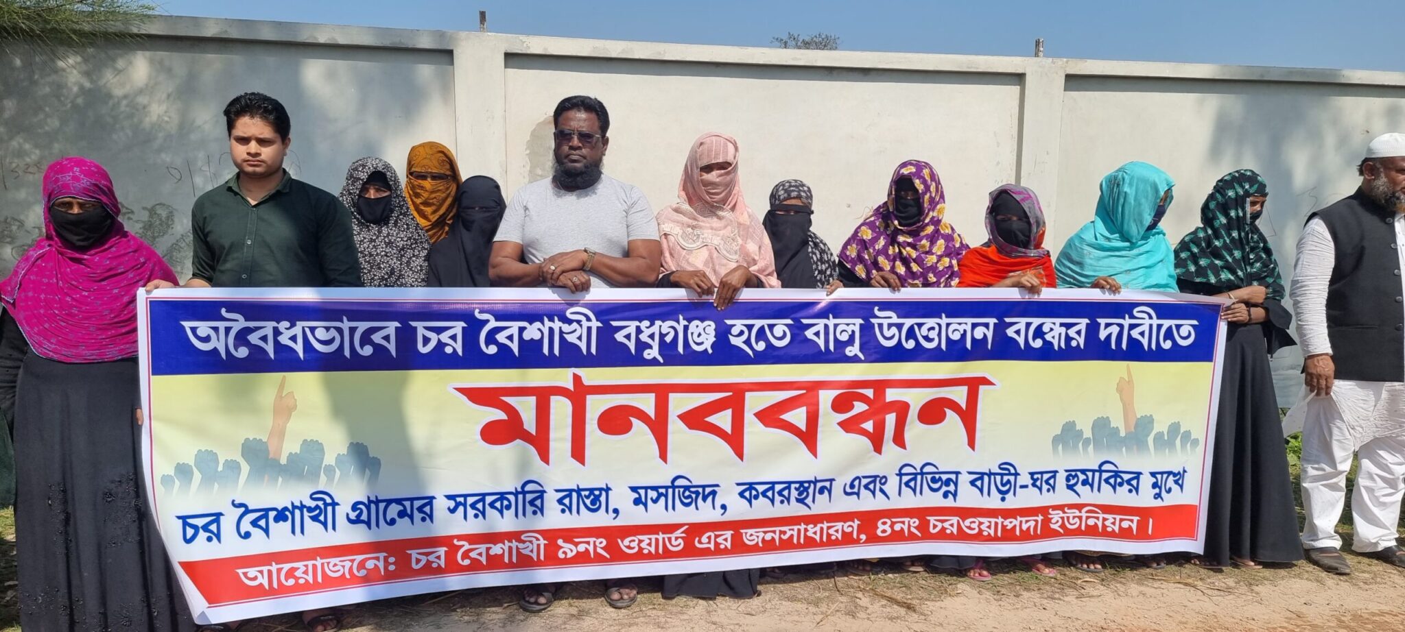 নোয়াখালীতে অবৈধ বালু উত্তোলন বন্ধে রাস্তায় দাঁড়ালেন এলাকাবাসী।।