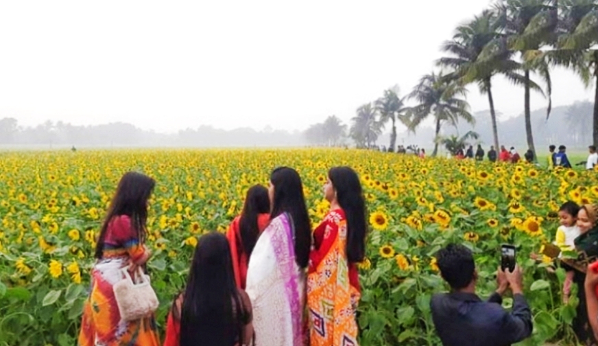 টেবুনিয়া বিএডিসিতে সুর্য্যমুখী ফুল দেখতে নারী পুরুষ ও শিক্ষার্থীরা সমাগম।।