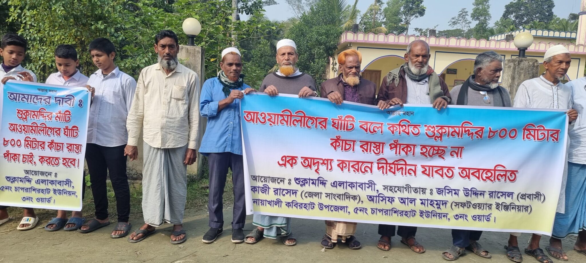 নোয়াখালী প্রতিনিধি।। নোয়াখালীর কবিরহাটে ৮’শত মিটার কাঁচা রাস্তা পাকাকরণের দাবিতে মানববন্ধন করেছে এলাকাবাসী। বৃহস্পতিবার-২৫ জানুয়ারি-বেলা ১১টার দিকে উপজেলার চাপরাশিরহাট ইউনিয়নের