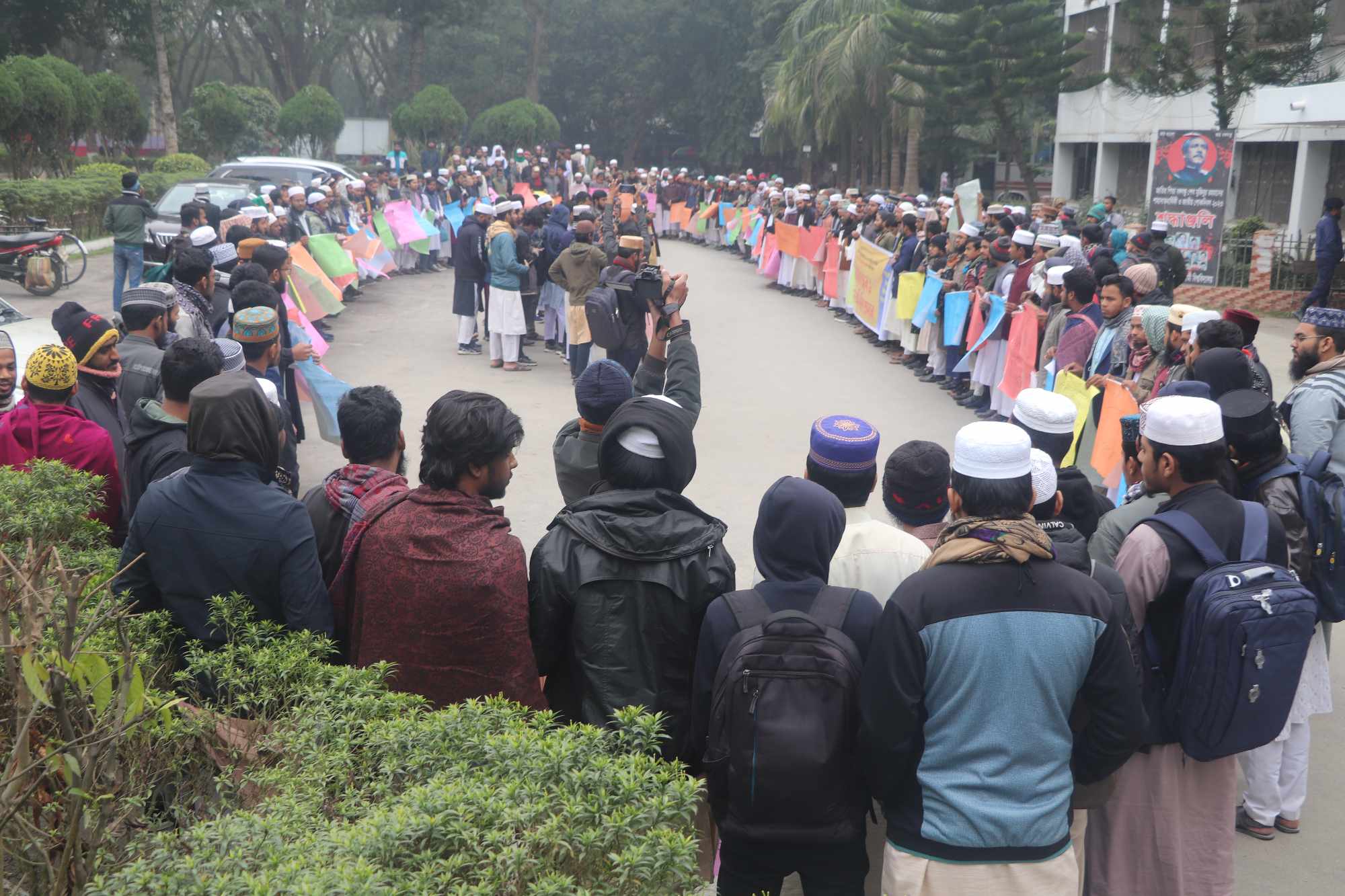 এবার নিকাব ইস্যুতে ইবিতে সাধারণ শিক্ষার্থীদের মানববন্ধন।।