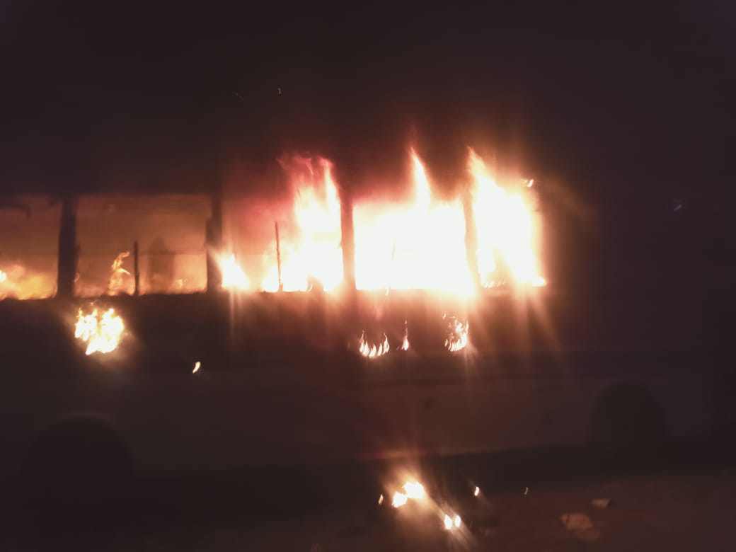 রূপগঞ্জে পার্কিংয়ে থাকা দুই পরিবহন বাসে আগুন।।