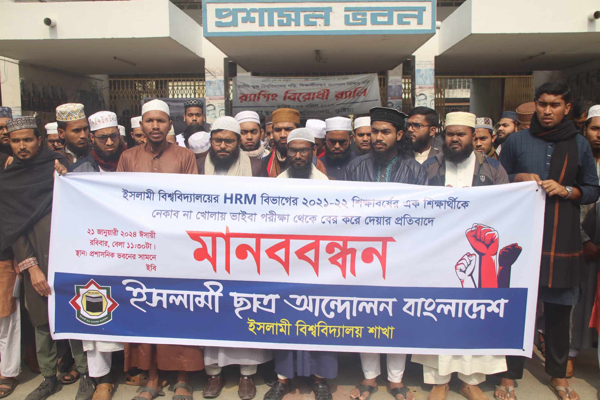 ইবিতে নেকাব না খোলায় নেওয়া হয়নি ভাইভা প্রতিবাদে মানববন্ধন।।