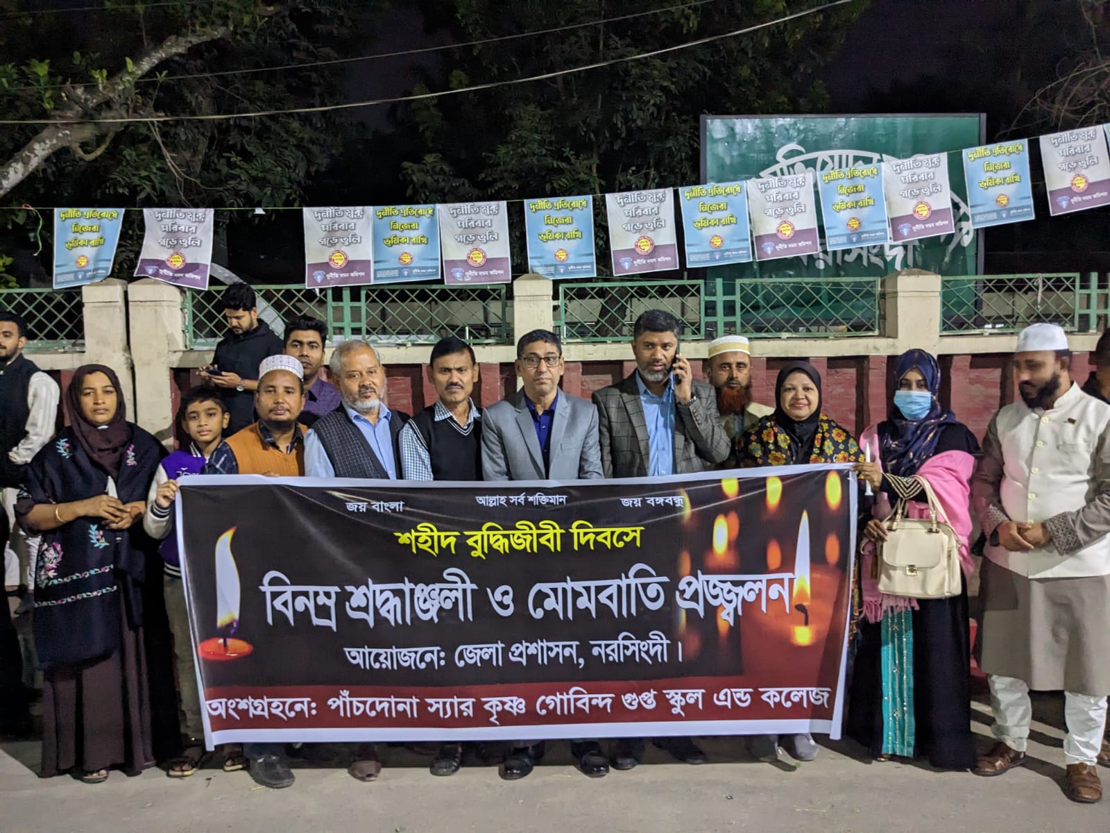 নরসিংদীতে শহীদ বুদ্ধিজীবী দিবসে মোমবাতি প্রজ্জ্বলন।।