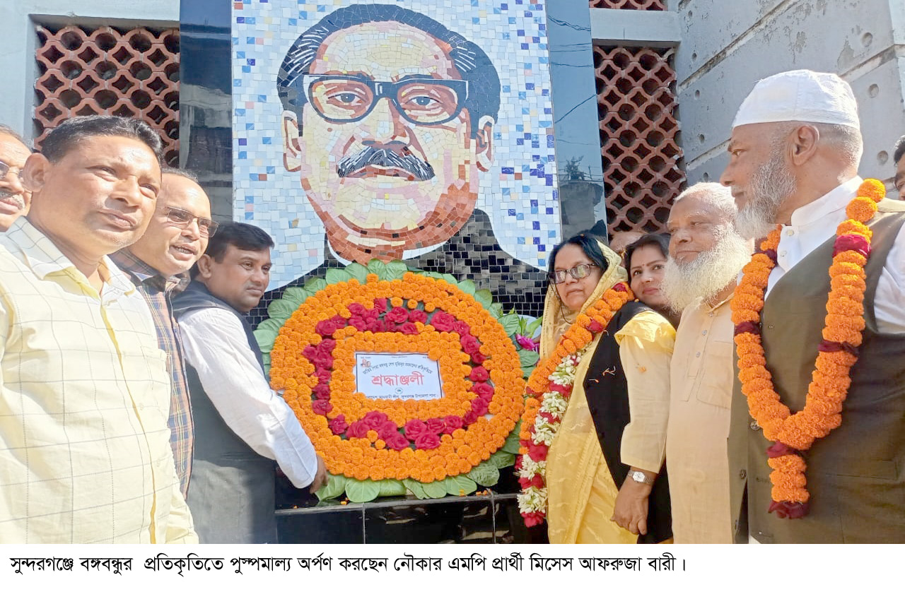 সুন্দরগঞ্জে বঙ্গবন্ধুর প্রতিকৃতিতে নৌকার প্রার্থী আফরুজা বারীর পুস্পমাল্য অর্পণ।।