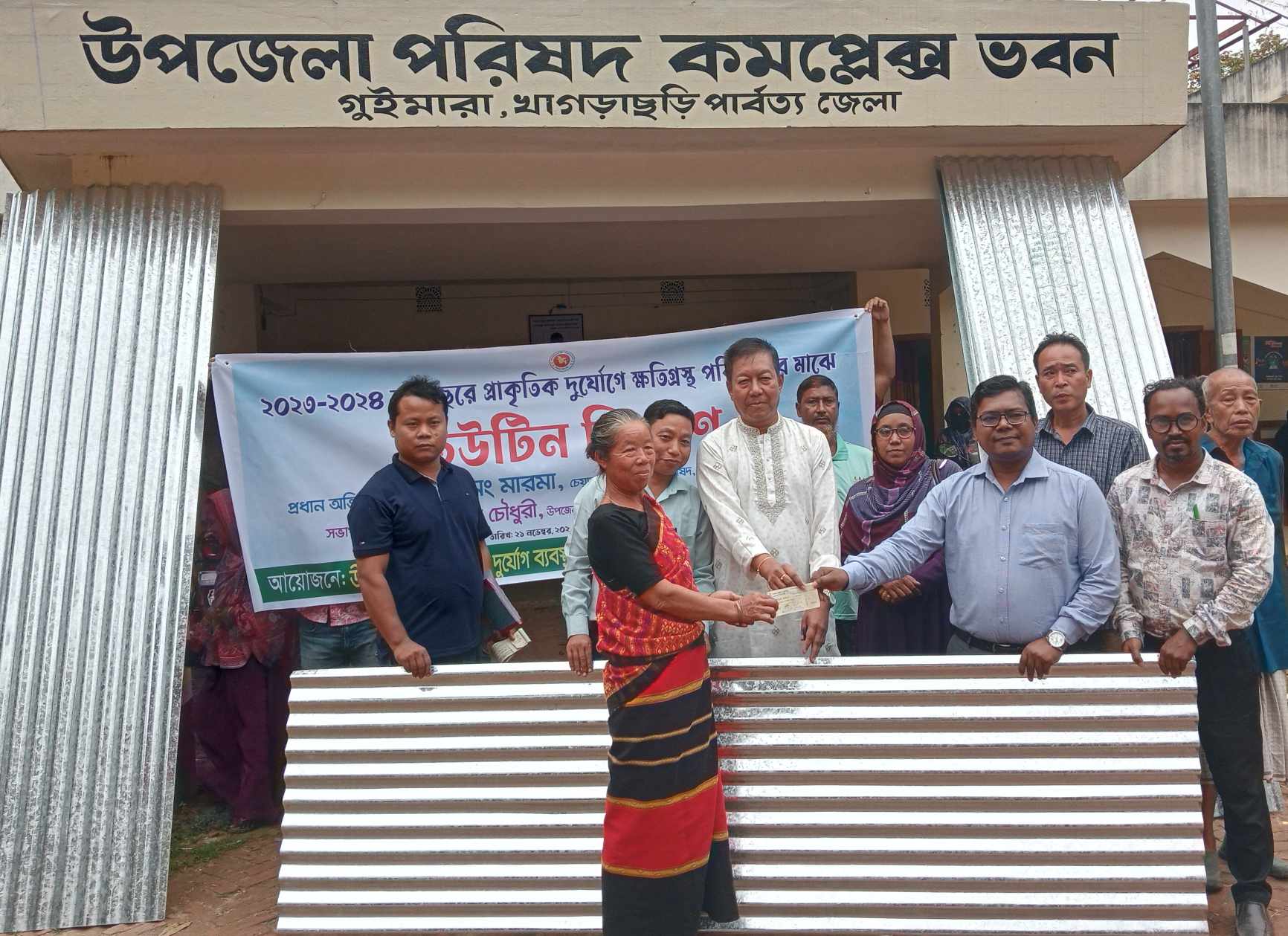 গুইমারায় দুর্যোগে ক্ষতিগ্রস্তদের মাঝে ঢেউটিন ও নগদ অর্থ বিতরণ।।