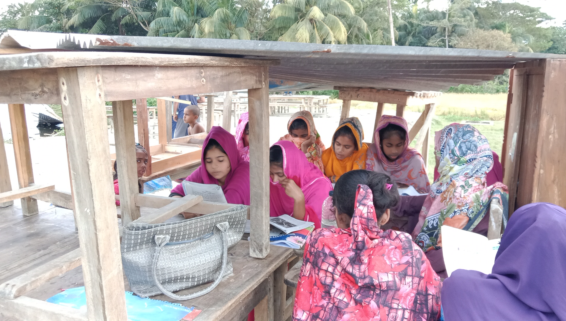 সুবর্ণচরে ঘূর্ণিঝড়ে বিধ্বস্ত স্কুল, খোলা আকাশের নিচে চলছে পাঠদান।।