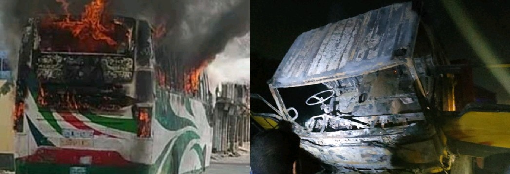 গাজীপুরে পৃথকভাবে বাস ও ট্রাকে আগুন।।