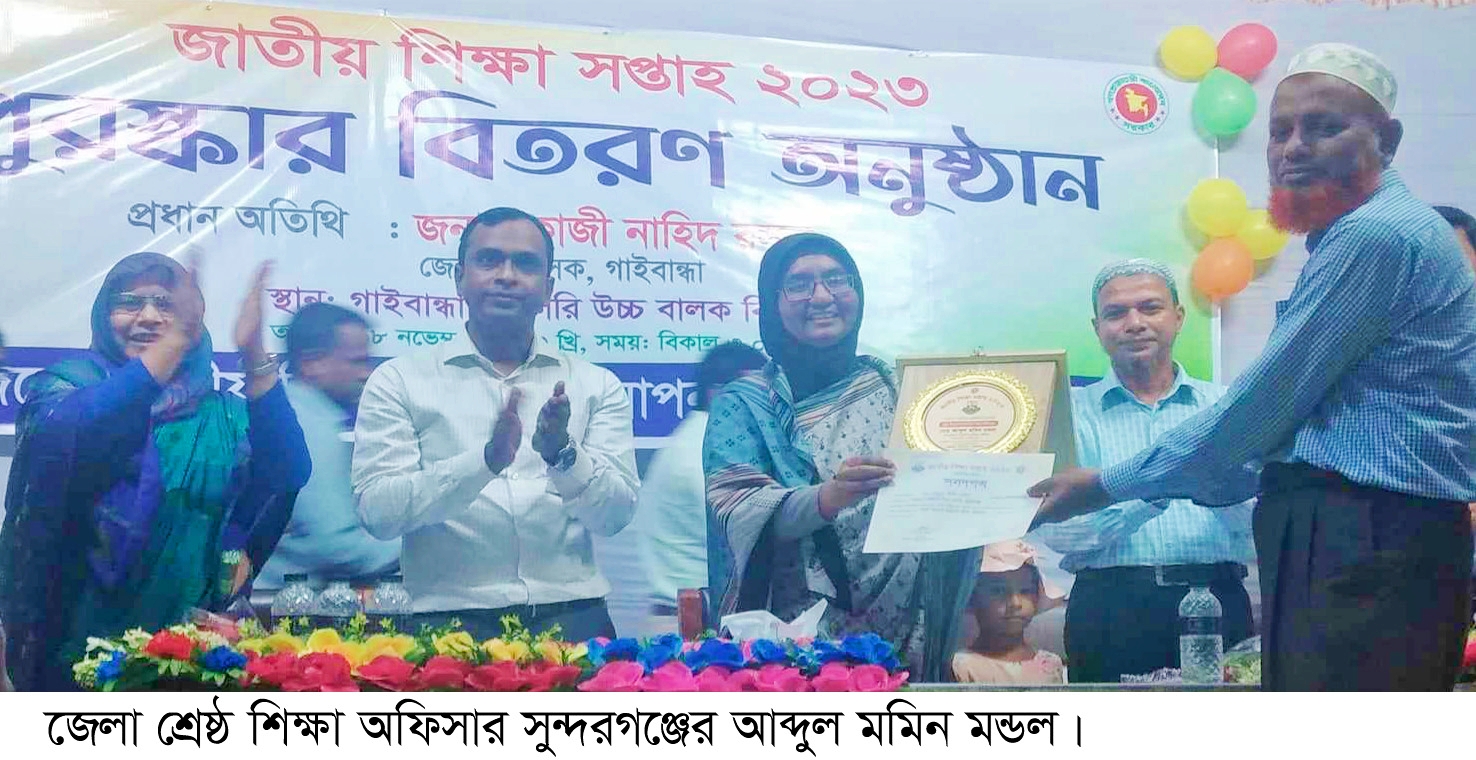 হযরত বেল্লাল সুন্দরগঞ্জ-গাইবান্ধা-প্রতিনিধি।। জাতীয় শিক্ষা সপ্তাহে জেলা পর্যায়ে বিভিন্ন ইভেন্টে বিজয়ী শিক্ষার্থী, শিক্ষক ও প্রতিষ্ঠানের মাঝে পুরস্কার বিতরণ করা হয়েছে।