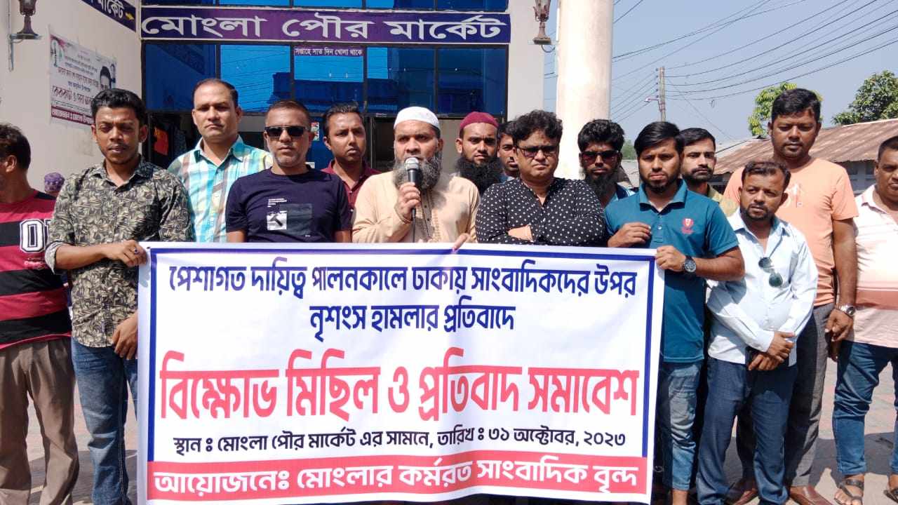 ঢাকায় সাংবাদিক নিহত ও হামলার ঘটনায় মোংলায় বিক্ষোভ।।