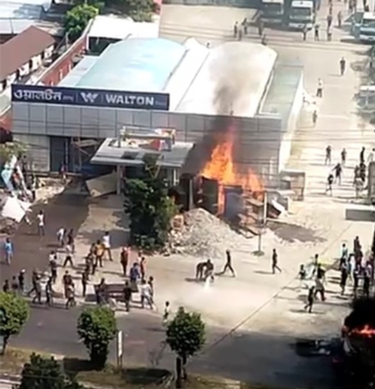কালিয়াকৈরে শ্রমিক অসন্তোষ ওয়ালটন প্লাজা-পিকআপে আগুন।।