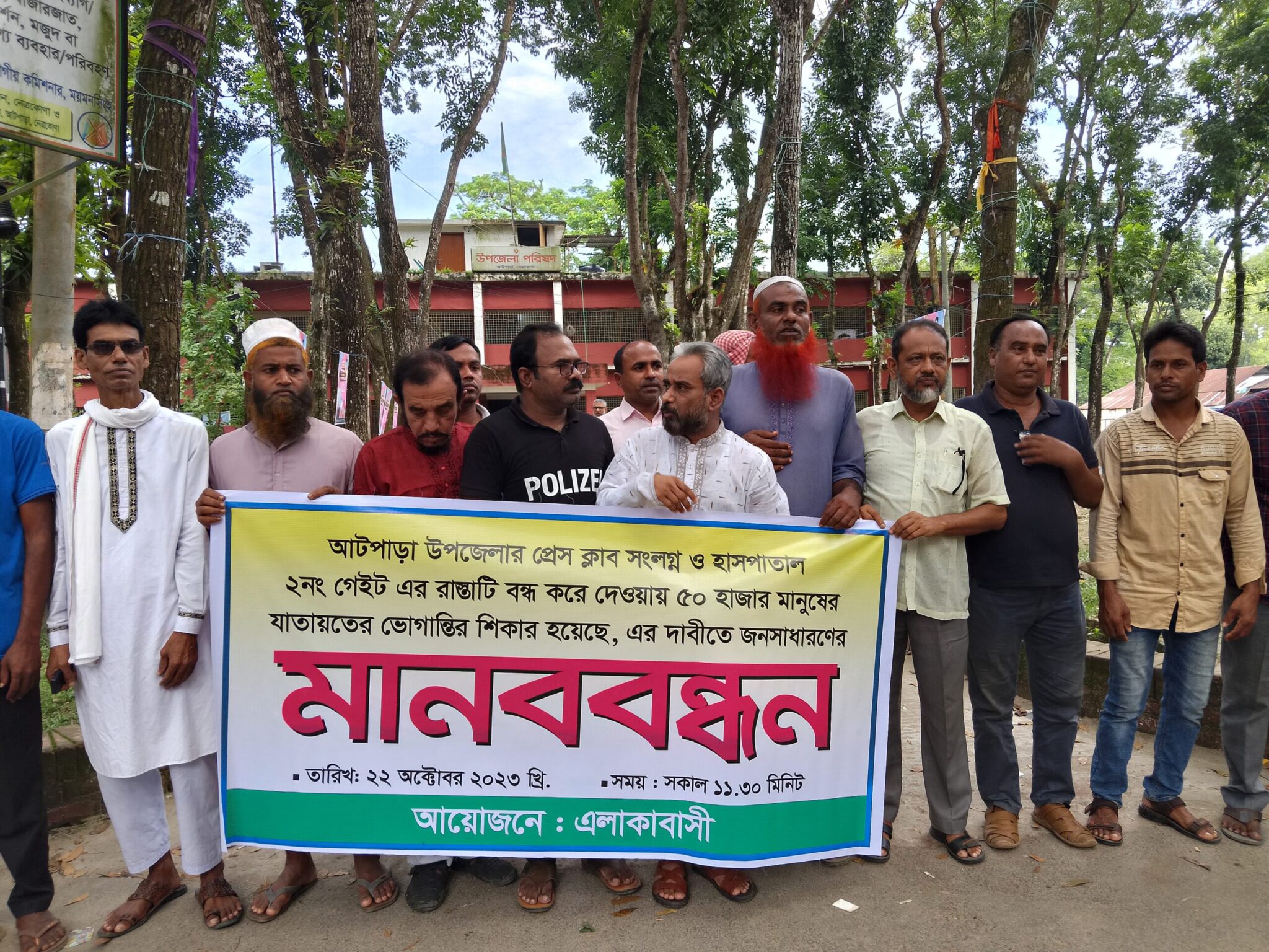 নেত্রকোণা প্রতিনিধি।। নেত্রকোণার আটপাড়ায় হাসপাতালের পিছনের যাতায়াতের পথ ও প্রেসক্লাব সংলগ্ন যোগাযোগের সড়ক বন্ধ করার প্রতিবাদে মানববন্ধন অনুষ্ঠিত হয়েছে। গতকাল