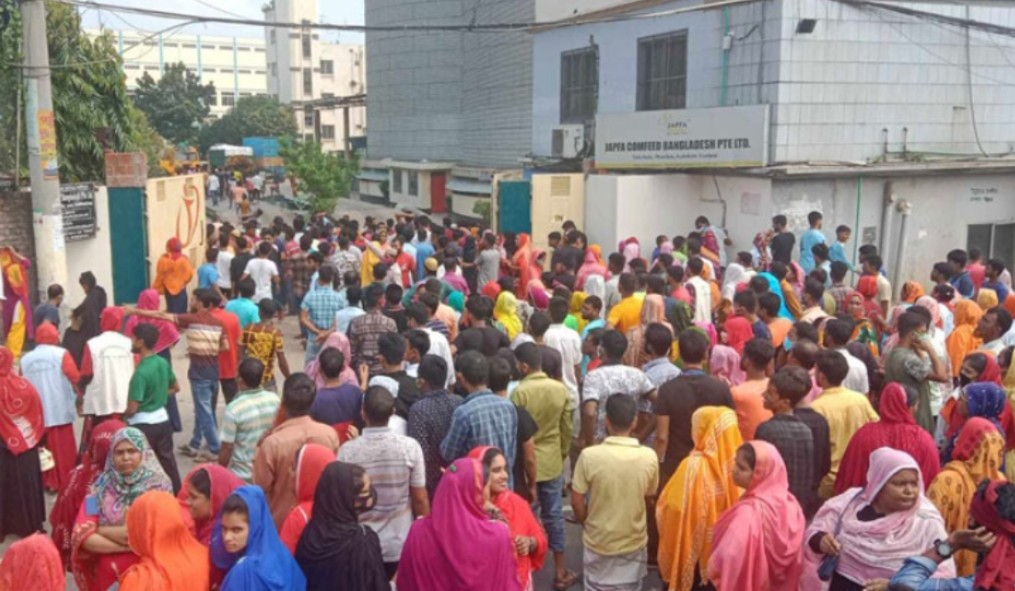 গাজীপুরে বেতন বৃদ্ধির দাবিতে শ্রমিকদের ঢাকা-টাঙ্গাইল মহাসড়ক অবরোধ।।
