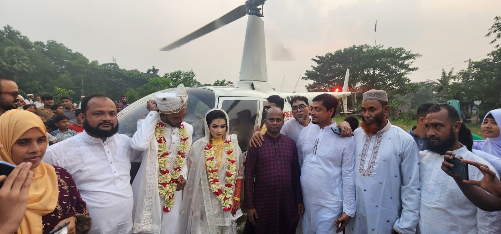 বাবার স্বপ্ন পূরণে হেলিকপ্টার চড়ে বিয়ে করলেন ছেলে।।