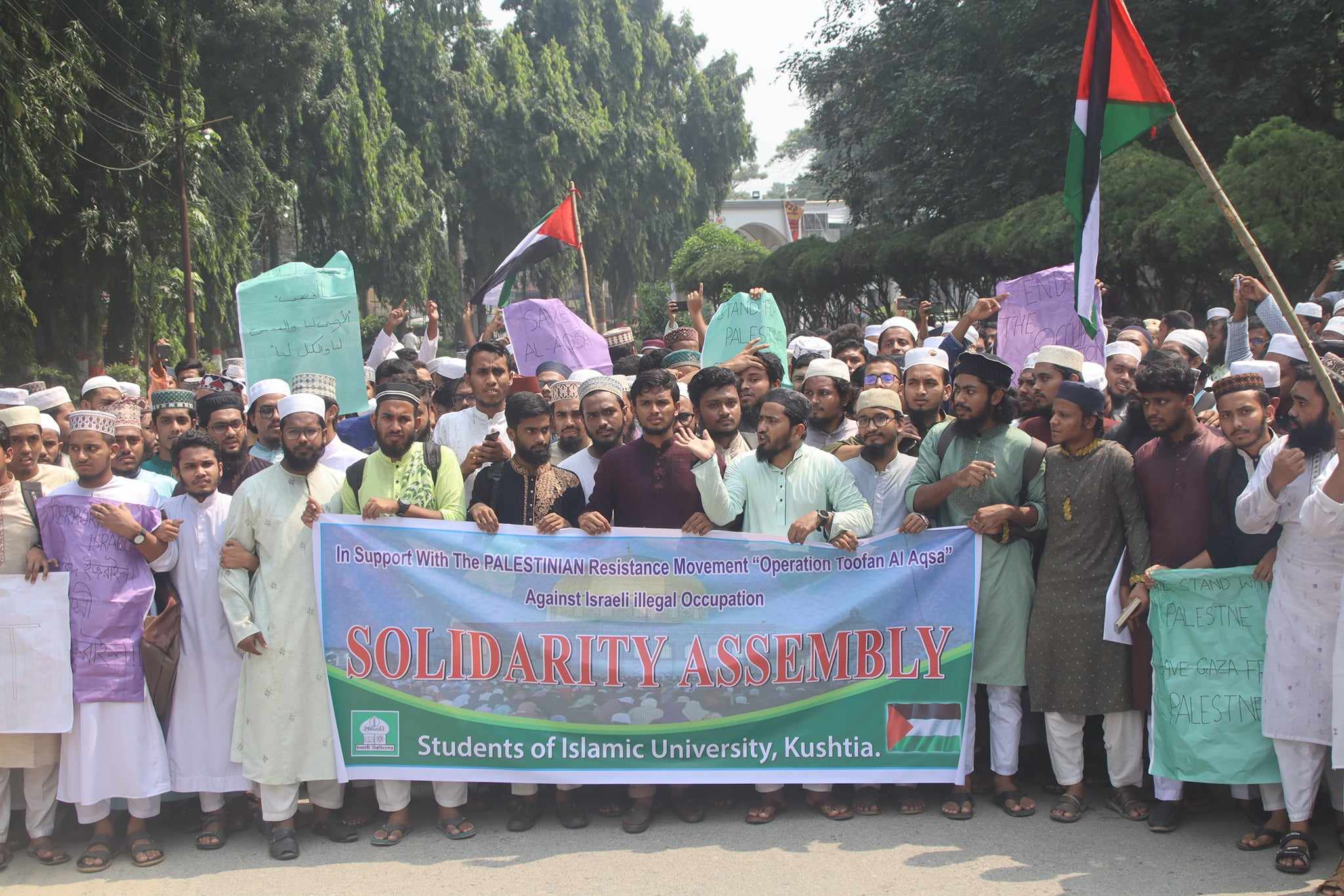 ফিলিস্তিনের প্রতি সংহতি জানিয়ে ইবিতে শিক্ষার্থীদের সমাবেশ।।