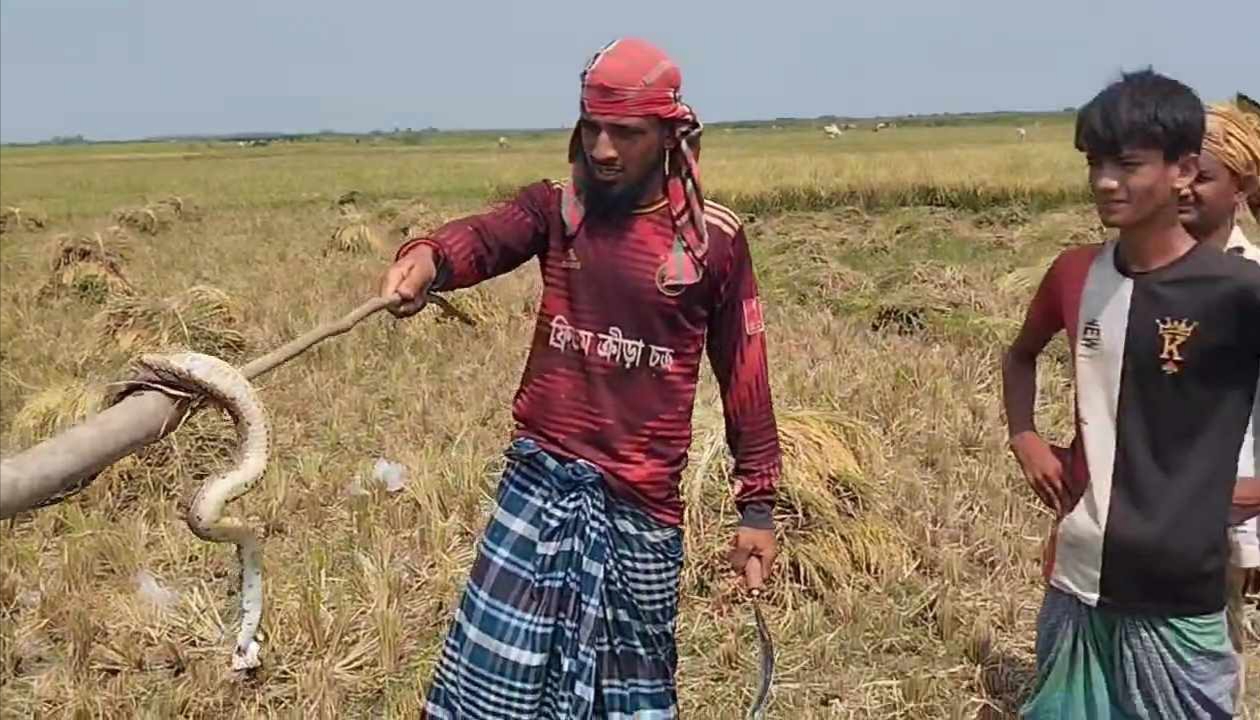 শরীয়তপুরে রাসেলস ভাইপার সাপ পিটিয়ে মারলো কৃষকরা।।