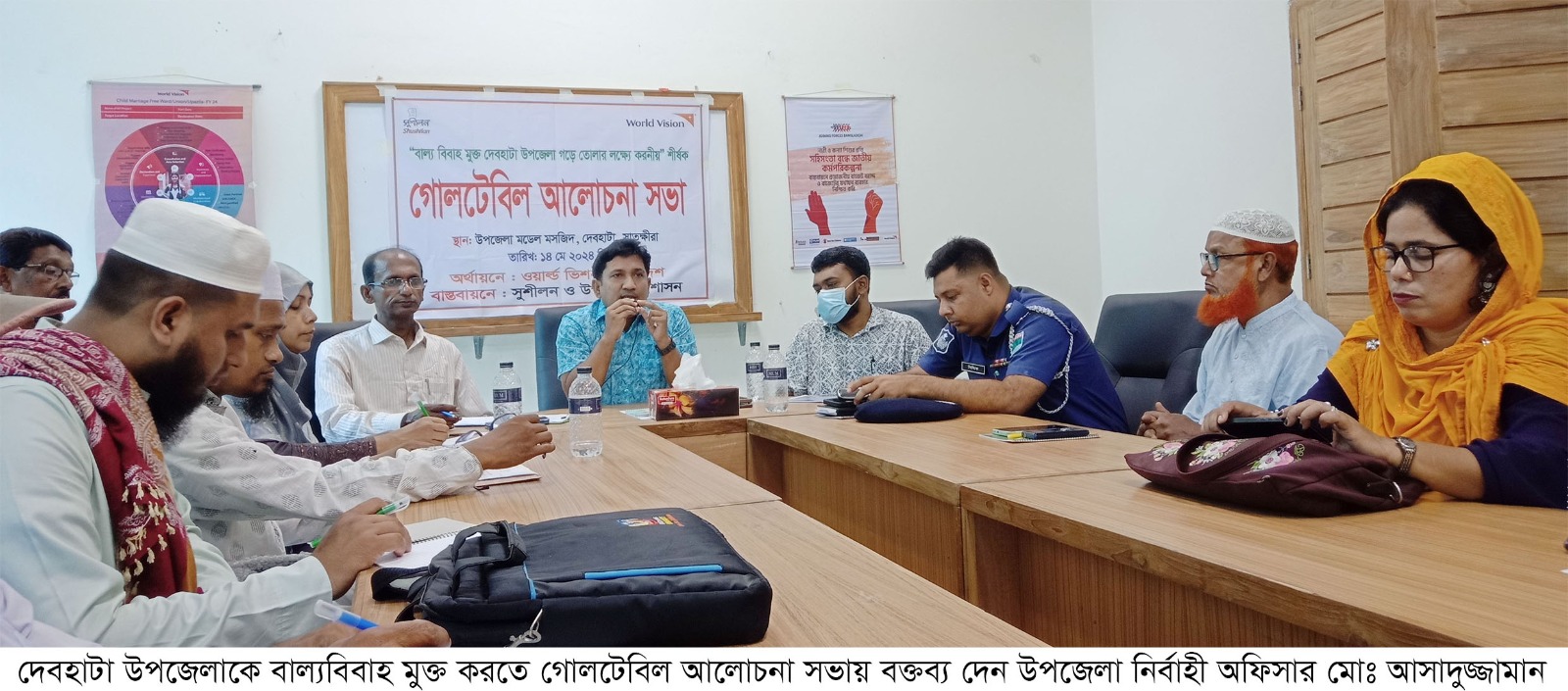 দেবহাটা -সাতক্ষীরা- প্রতিনিধি।। দেবহাটা উপজেলাকে বাল্যবিবাহ মুক্ত করতে গোলটেবিল আলোচনা সভা অনুষ্ঠিত হয়েছে। মঙ্গলবার উপজেলা প্রশাসন ও সুশীলনের আয়োজনে