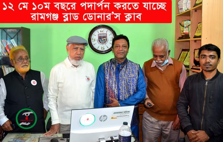 আজ ১২ মে ১০ম বছরে পদার্পন করলো রামগঞ্জ ব্লাড ডোনার’স ক্লাব।।