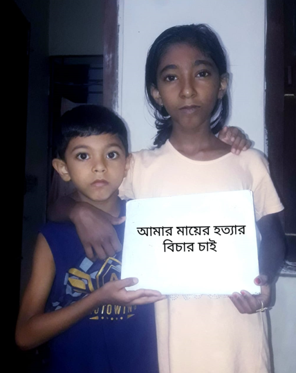মায়ের হত্যার বিচার চাইলেন দুই শিশু সন্তান।।