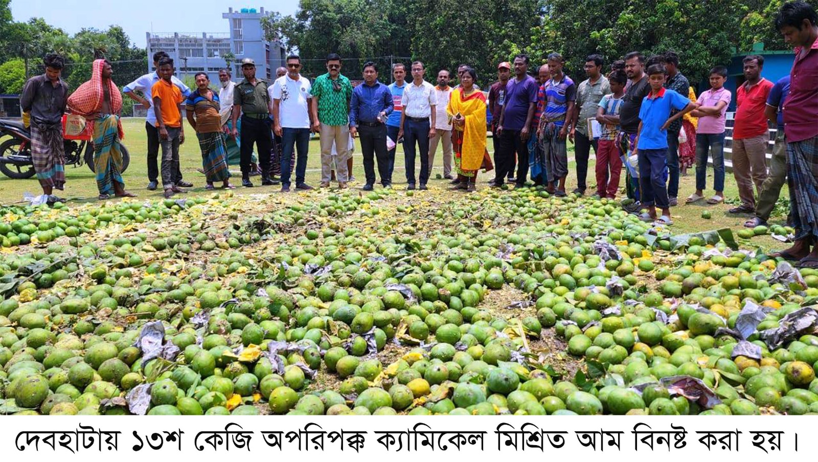 দেবহাটায় ১৩শ কেজি অপরিপক্ক ক্যামিকেল মিশ্রিত আম বিনষ্ট।।