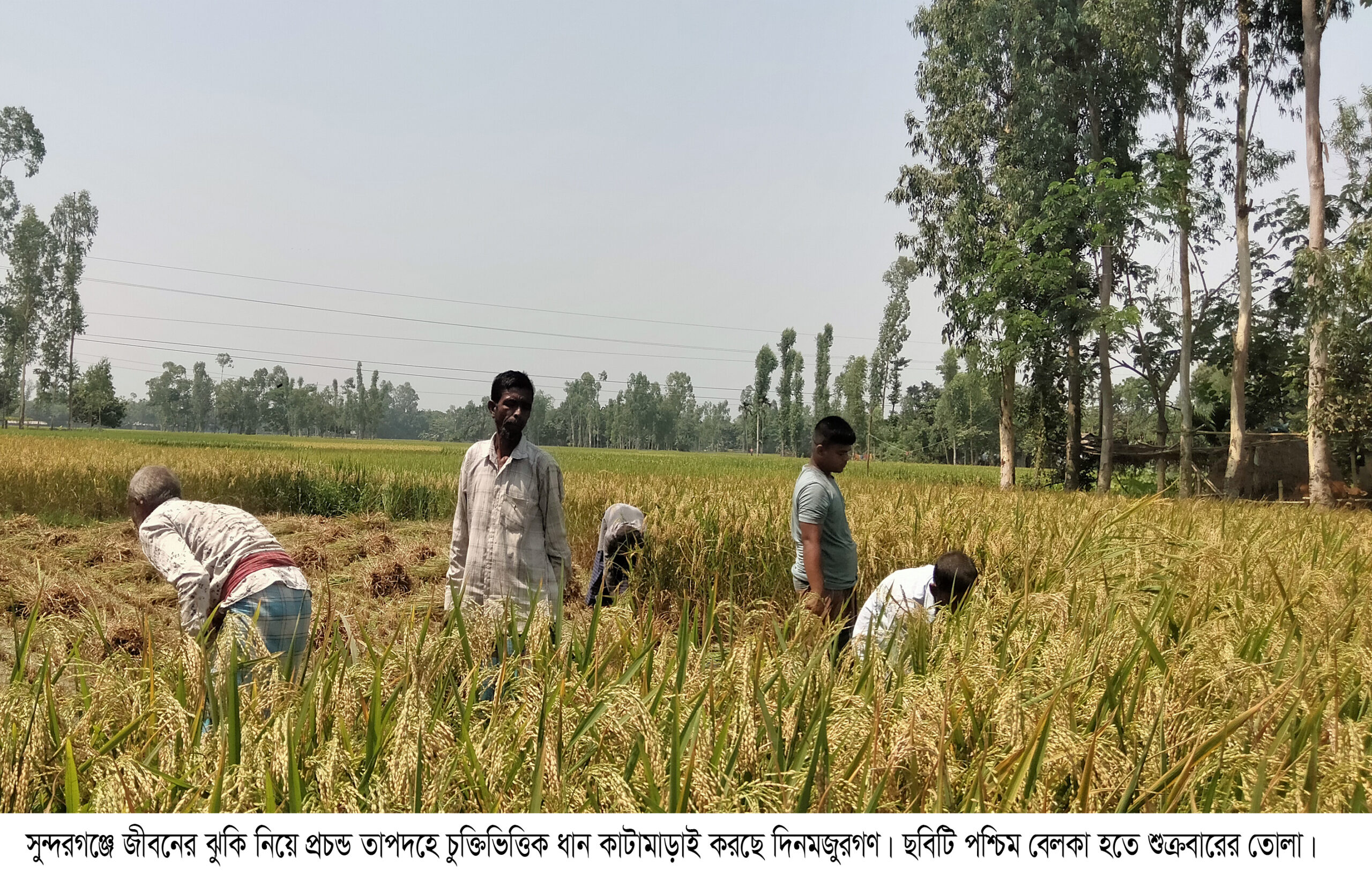 সুন্দরগঞ্জে পাকা ধান মাঠে- তীব্র তাপদাহে দিনমজুর না পাওয়ায় কৃষক বিপাকে।।