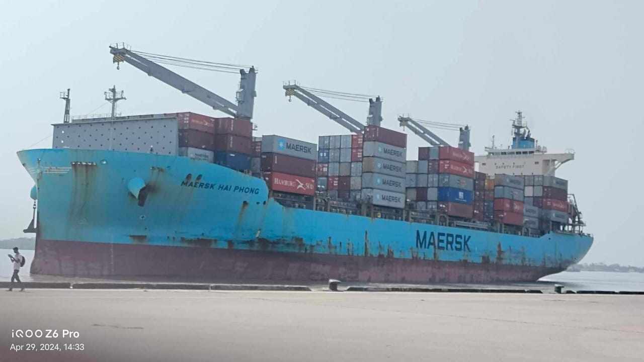 মোংলা বন্দর জেটিতে কন্টেইনার নিয়ে ১৮৬ মিটার জাহাজ।।