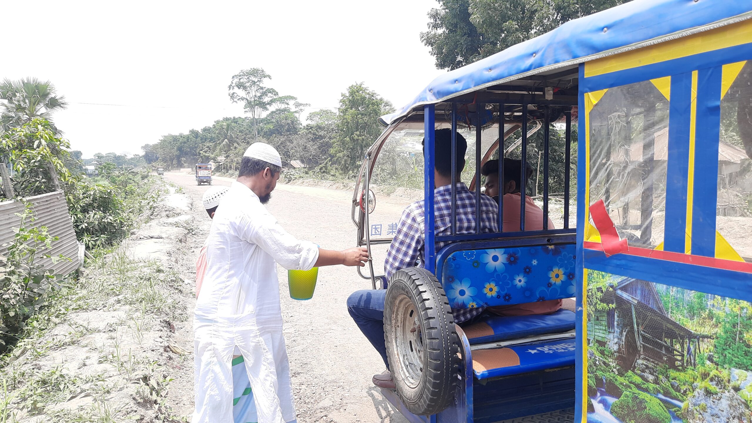 তীব্র গরমে মহাসড়কে গাড়ি চালকদের ঠান্ডা শরবত খাওয়াচ্ছেন মাদ্রাসার ছাত্ররা।।