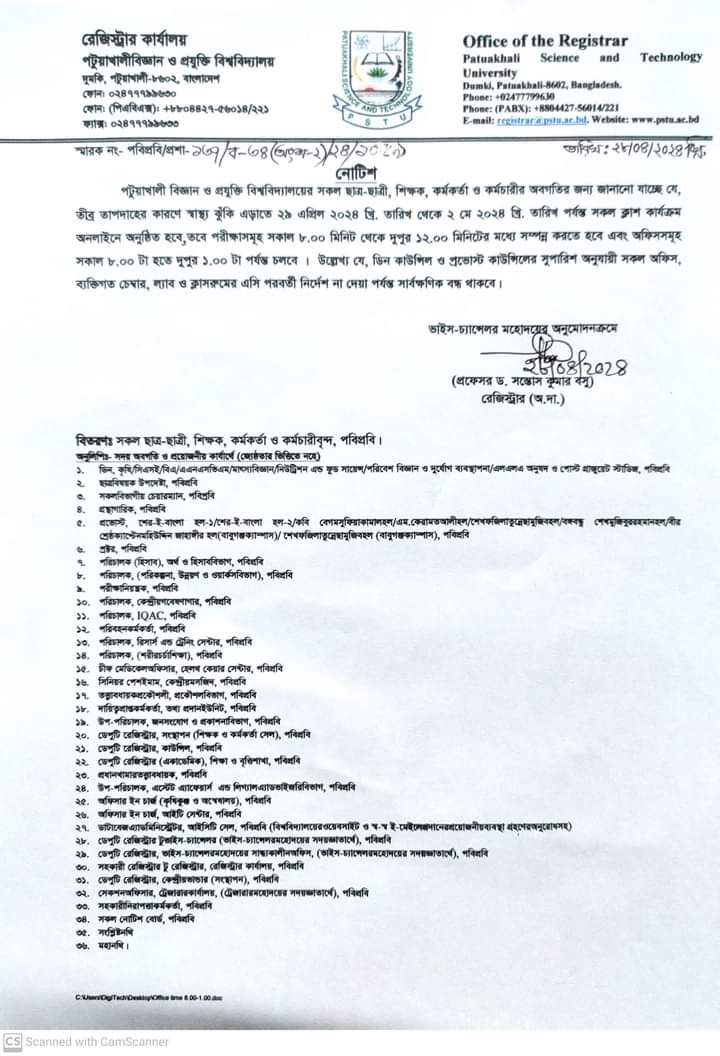 জান্নাতীন নাঈম জীবন পবিপ্রবি প্রতিনিধি।। সারাদেশে তীব্র তাপপ্রবাহ অনুভূত হওয়ায় স্বাস্থ্য ঝুঁকি এড়াতে অনলাইনে ক্লাস নেওয়ার সিদ্ধান্ত নিয়েছে পটুয়াখালী বিজ্ঞান
