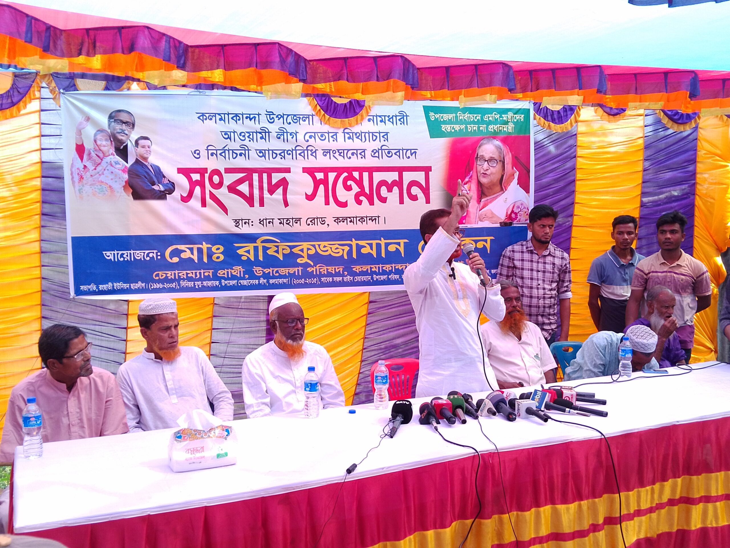 নেত্রকোনা প্রতিনিধি।। নেত্রকোনার কলমাকান্দায় উপজেলা পরিষদ নির্বাচনে নামধারী আওয়ামী লীগ নেতার মিথ্যাচার ও নির্বাচনী আচরনবিধি লংঘনের প্রতিবাদে সংবাদ সম্মেলণ অনুষ্ঠিত