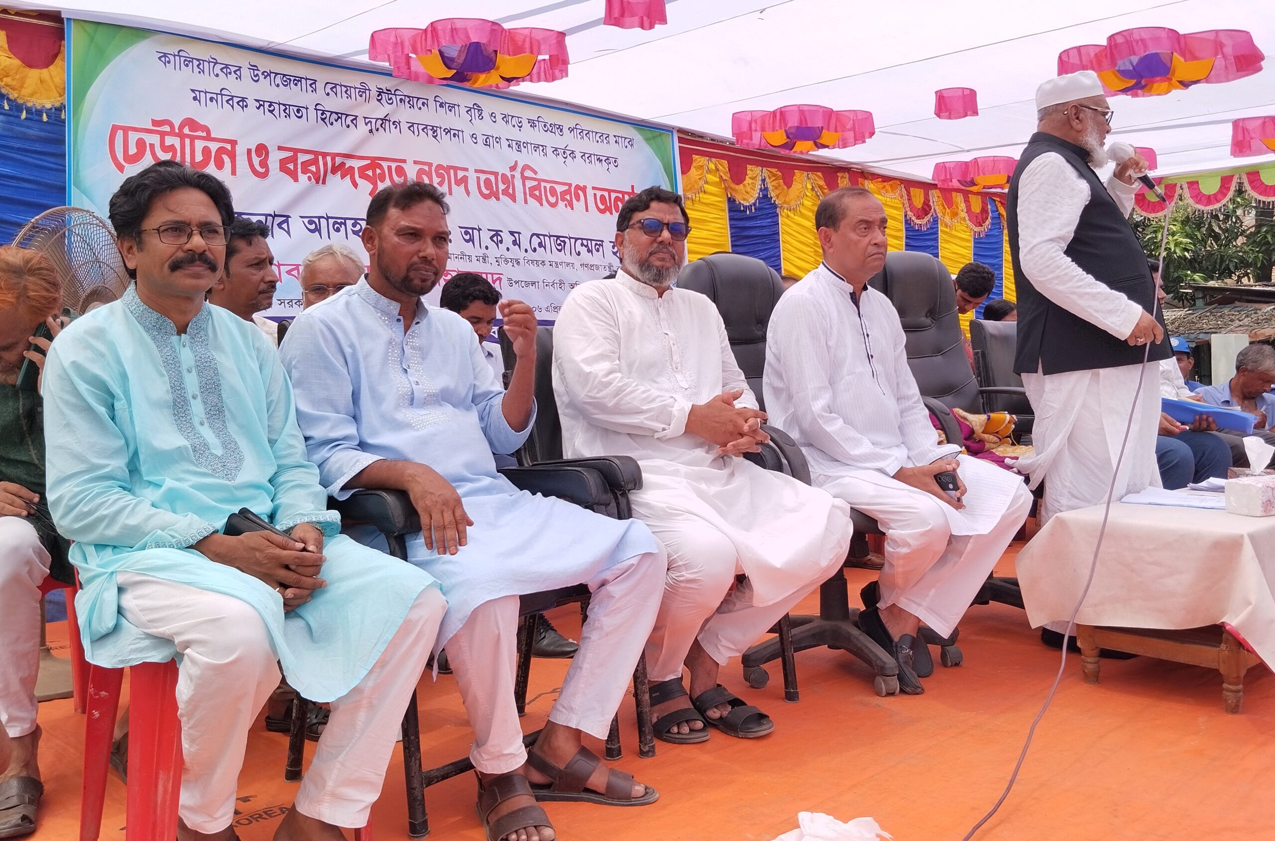 বোয়ালী শিলা বৃষ্টিতে গ্রতিগ্রস্হদের মাঝে চেক ও ঢেউটিন বিতরন।।