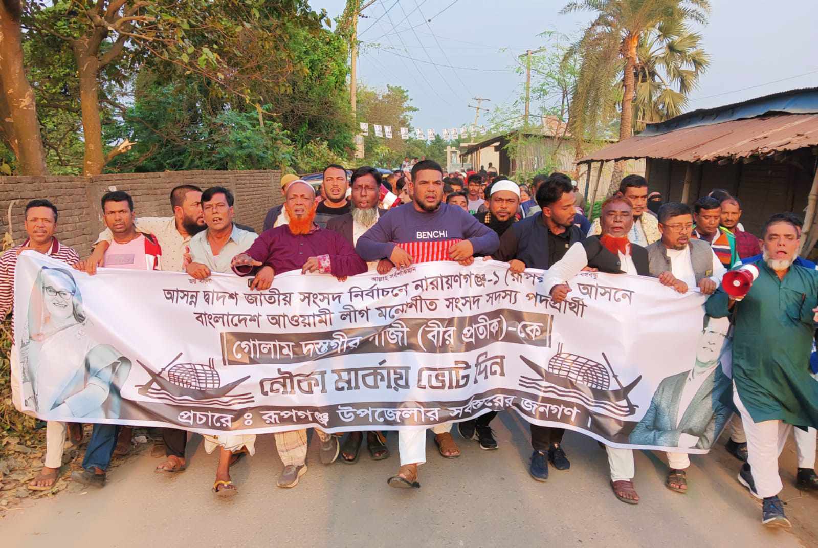 রূপগঞ্জে গোলাম দস্তগীর গাজী নৌকা প্রতীক পাওয়ায় আনন্দ মিছিল।।